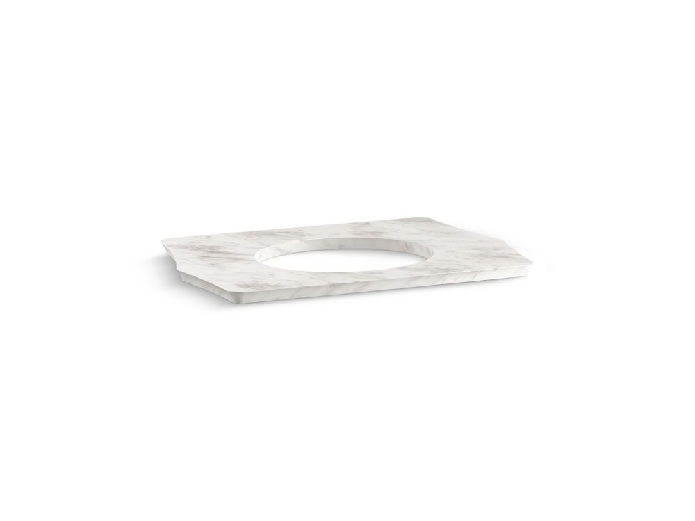 Offered in a bright and luxurious Bering White Marble stone, the Script™ console table top offers an elegant solution to transitional bathroom settings.- Constructed of marble