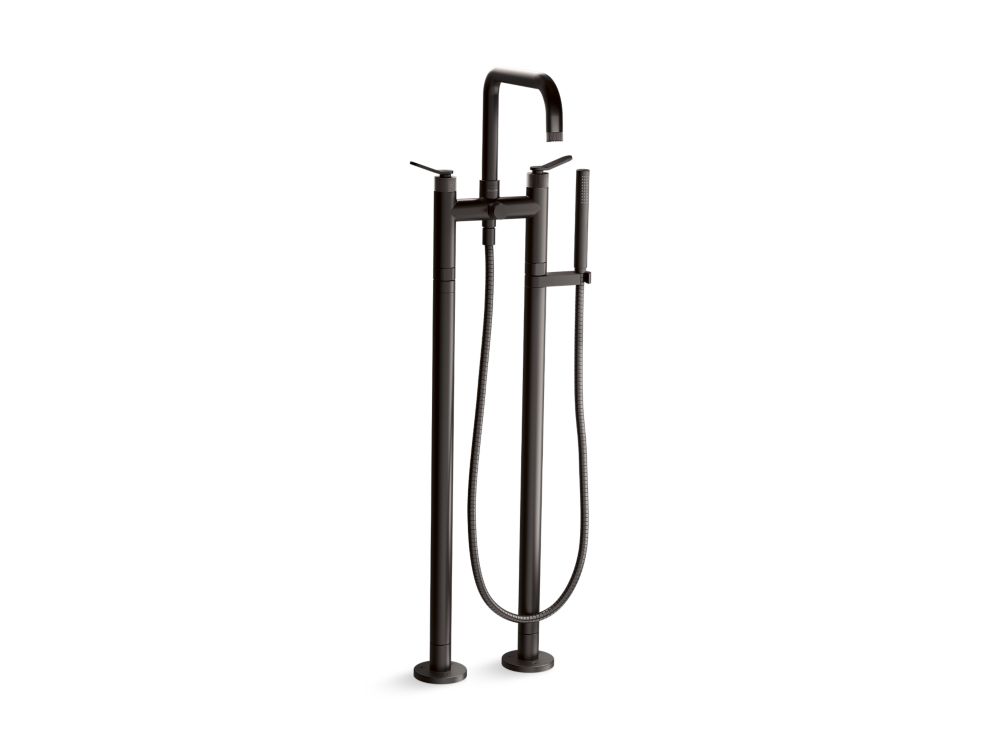 Modern American style meets sleek European form in the all-brass Aileron™ collection. Minimalist lines, distinctive knurling texture and handcrafted character make this series suitable for any contemporary or transitional environment. Paying homage to aeronautical design, Aileron™ features thoughtful details including a slender tube spout, winged handle set, and finial-adorned levers. Kallista is proud to introduce Aileron™ in partnership with Italian manufacturer CRISTINA Rubinetterie and creative industrial design team Silvana Angeletti and Daniele Ruzza. As a declaration in American Contemporary design, this Aileron™ Freestanding bath faucet with included handshower is a captivating addition to any modern bathroom aesthetic.- High-quality solid-brass construction for durability and reliability