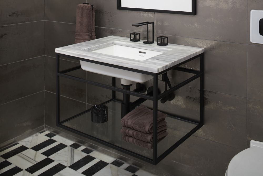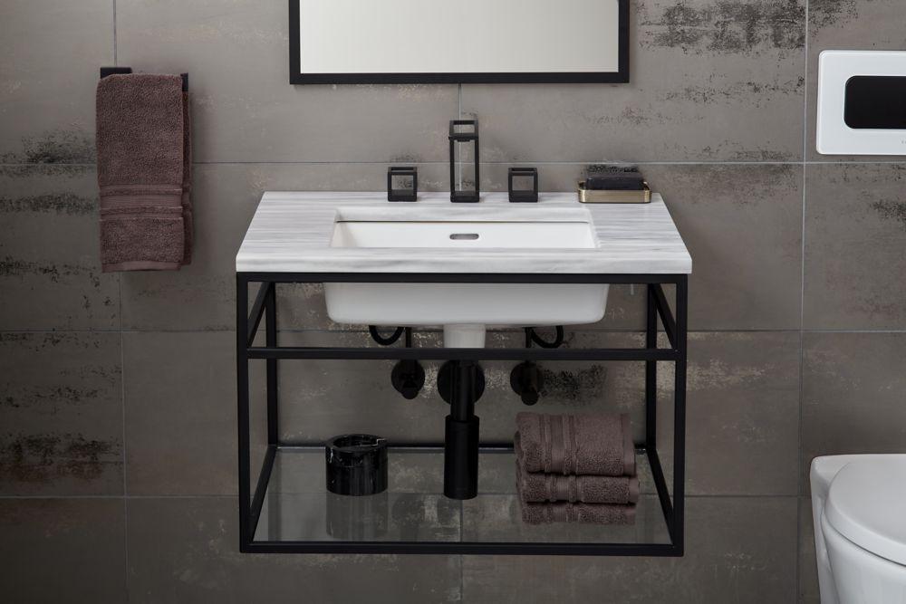 Offered in KALLISTA's chic Matte Black finish, the Grid Console is a sleek and bold piece for any modern bathroom setting. The wall-hung installation and glass shelf optimizes the use of space while creating a striking look.- High-quality solid metal construction for durability and reliability