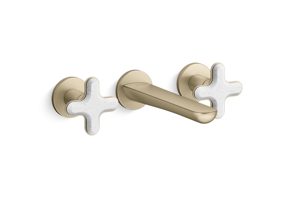 American contemporary form is embodied in the streamlined simplicity of the 002™ brassware collection, starring organic round edges and uninterrupted clean lines. This premium wall mount widespread bathroom sink faucet with upgraded cross handles will elevate your contemporary or transitional bathroom setting in both design and innovation. With a custom-engineered aerator, the user will experience a unique, artistic and splash-free water stream. Adorned with jewelry inspired handles featuring exquisite hand-crafted Italian Statuary White Carrara, one of three meticulously curated natural stone offerings, and the availability in five luxurious finishes, the 002™ bathroom collection allows you to create a faucet pairing that suits your personal style.- High-quality metal construction for durability and reliability