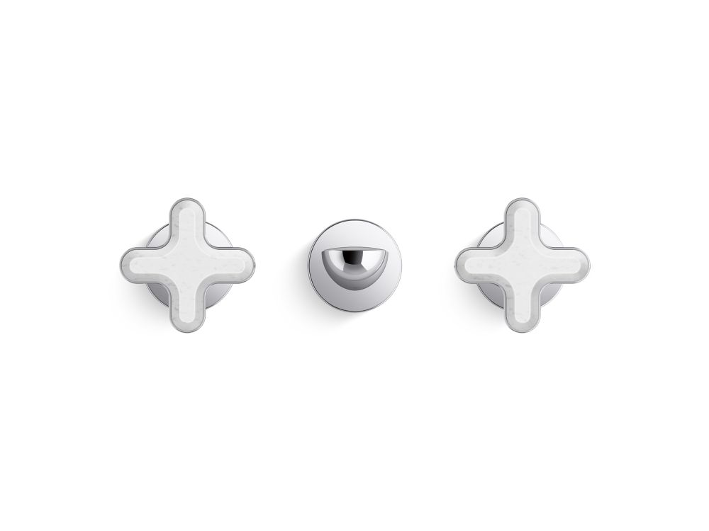 American contemporary form is embodied in the streamlined simplicity of the 002™ brassware collection, starring organic round edges and uninterrupted clean lines. This premium wall mount widespread bathroom sink faucet with upgraded cross handles will elevate your contemporary or transitional bathroom setting in both design and innovation. With a custom-engineered aerator, the user will experience a unique, artistic and splash-free water stream. Adorned with jewelry inspired handles featuring exquisite hand-crafted Italian Statuary White Carrara, one of three meticulously curated natural stone offerings, and the availability in five luxurious finishes, the 002™ bathroom collection allows you to create a faucet pairing that suits your personal style.- High-quality metal construction for durability and reliability