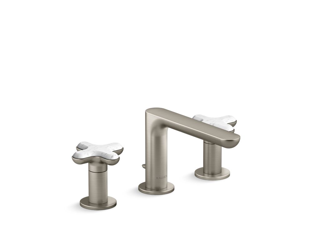 American contemporary form is embodied in the streamlined simplicity of the 002™ brassware collection, starring organic round edges and uninterrupted clean lines. This premium low-profile widespread bathroom sink faucet with decorative cross handles will elevate your contemporary or transitional bathroom setting in both design and innovation. With a custom-engineered aerator, the user will experience a unique, artistic and splash-free water stream. Adorned with jewelry inspired handles featuring exquisite hand-crafted Italian Statuary White Carrara, one of three meticulously curated natural stone offerings, and the availability in five luxurious finishes, the 002™ bathroom collection allows you to create a faucet pairing that suits your personal style.- High-quality metal construction for durability and reliability