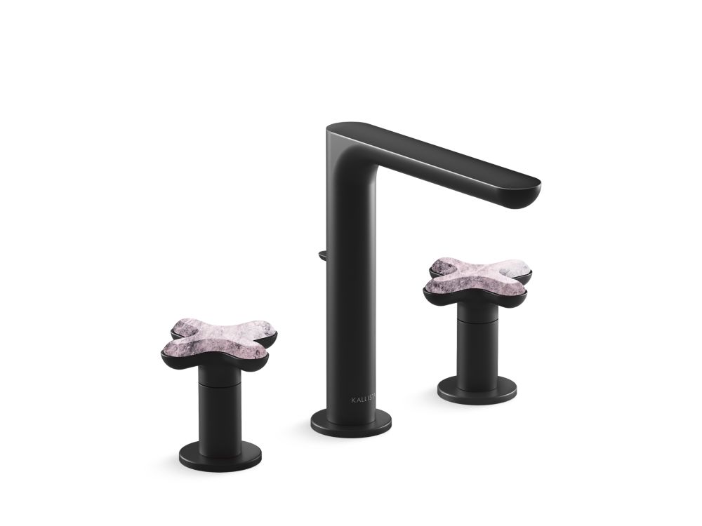 American contemporary form is embodied in the streamlined simplicity of the 002™ brassware collection, starring organic round edges and uninterrupted clean lines. This premium tall widespread bathroom sink faucet with upgraded cross handles will elevate your contemporary or transitional bathroom setting in both design and innovation. With a custom-engineered aerator, the user will experience a unique, artistic and splash-free water stream. Adorned with jewelry inspired handles featuring exquisite hand-crafted Rose Quartz, one of three meticulously curated natural stone offerings, and the availability in five luxurious finishes, the 002™ bathroom collection allows you to create a faucet pairing that suits your personal style.- High-quality metal construction for durability and reliability