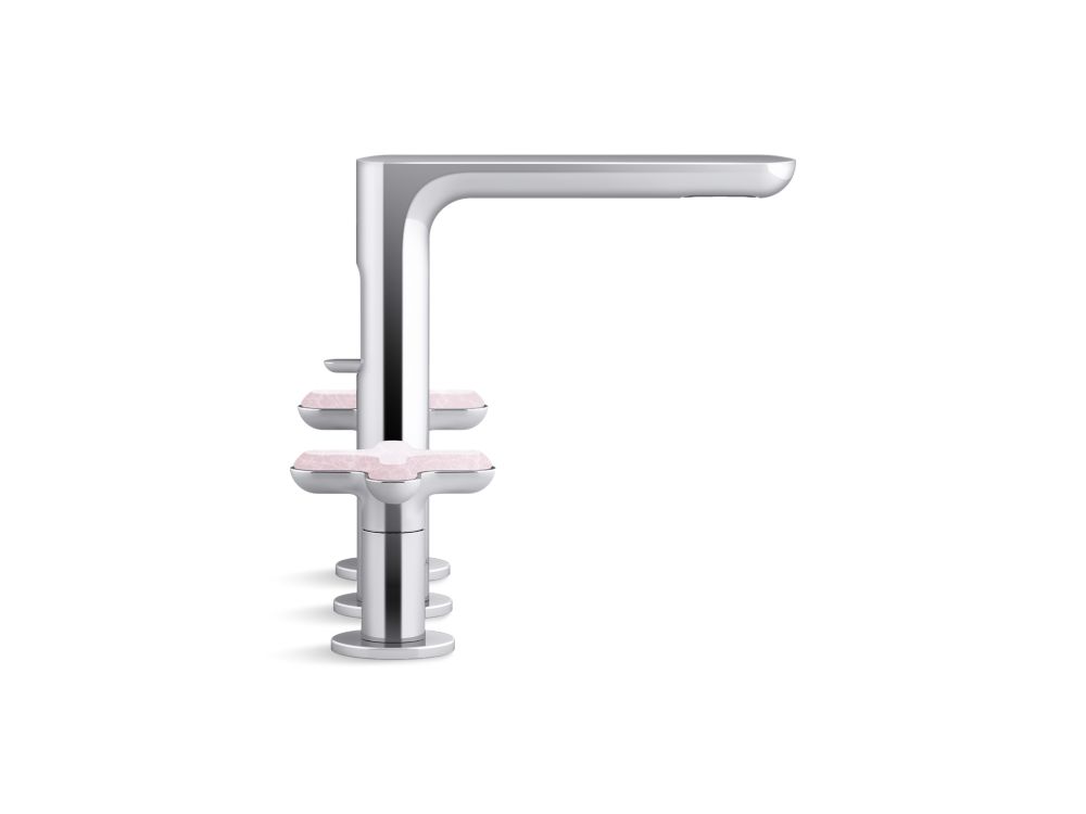 American contemporary form is embodied in the streamlined simplicity of the 002™ brassware collection, starring organic round edges and uninterrupted clean lines. This premium tall widespread bathroom sink faucet with upgraded cross handles will elevate your contemporary or transitional bathroom setting in both design and innovation. With a custom-engineered aerator, the user will experience a unique, artistic and splash-free water stream. Adorned with jewelry inspired handles featuring exquisite hand-crafted Rose Quartz, one of three meticulously curated natural stone offerings, and the availability in five luxurious finishes, the 002™ bathroom collection allows you to create a faucet pairing that suits your personal style.- High-quality metal construction for durability and reliability