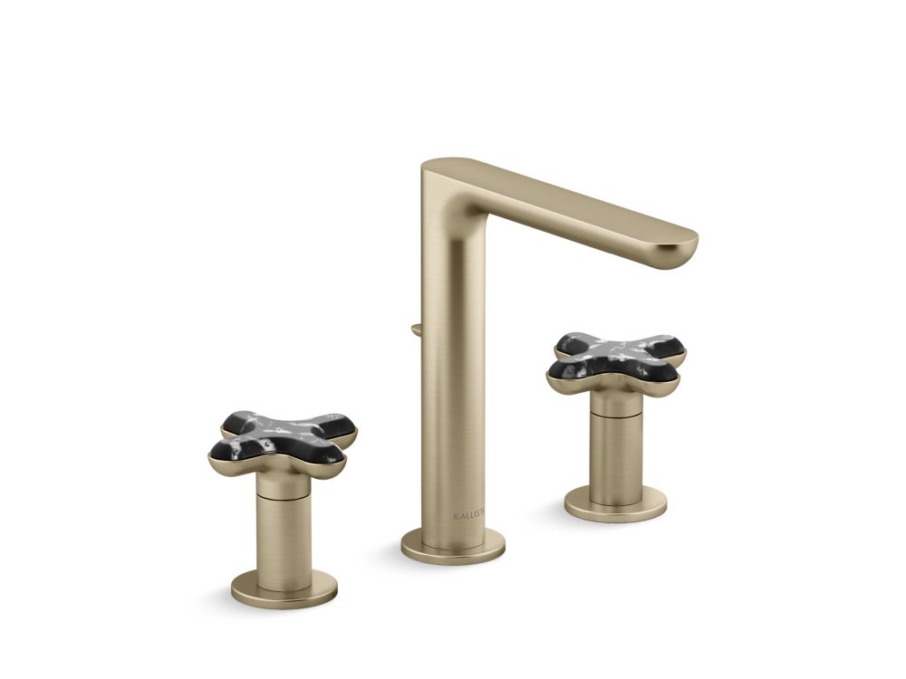 American contemporary form is embodied in the streamlined simplicity of the 002™ brassware collection, starring organic round edges and uninterrupted clean lines. This premium tall widespread bathroom sink faucet with upgraded cross handles will elevate your contemporary or transitional bathroom setting in both design and innovation. With a custom-engineered aerator, the user will experience a unique, artistic and splash-free water stream. Adorned with jewelry inspired handles featuring exquisite hand-crafted Italian Zebra Jasper, one of three meticulously curated natural stone offerings, and the availability in five luxurious finishes, the 002™ bathroom collection allows you to create a faucet pairing that suits your personal style.- High-quality metal construction for durability and reliability