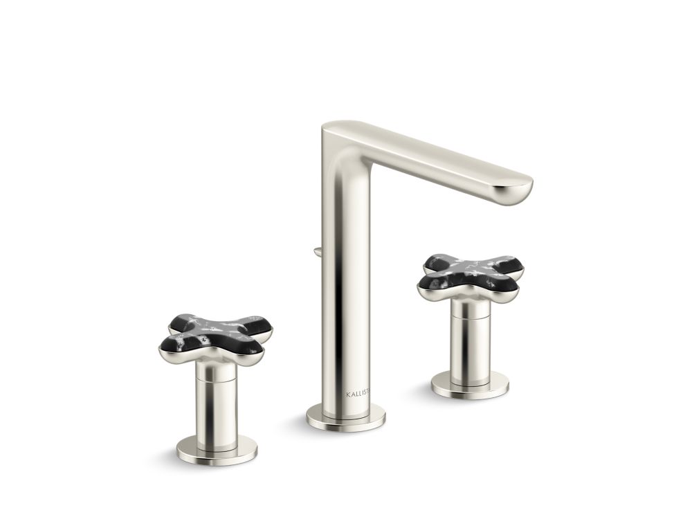 American contemporary form is embodied in the streamlined simplicity of the 002™ brassware collection, starring organic round edges and uninterrupted clean lines. This premium tall widespread bathroom sink faucet with upgraded cross handles will elevate your contemporary or transitional bathroom setting in both design and innovation. With a custom-engineered aerator, the user will experience a unique, artistic and splash-free water stream. Adorned with jewelry inspired handles featuring exquisite hand-crafted Italian Zebra Jasper, one of three meticulously curated natural stone offerings, and the availability in five luxurious finishes, the 002™ bathroom collection allows you to create a faucet pairing that suits your personal style.- High-quality metal construction for durability and reliability
