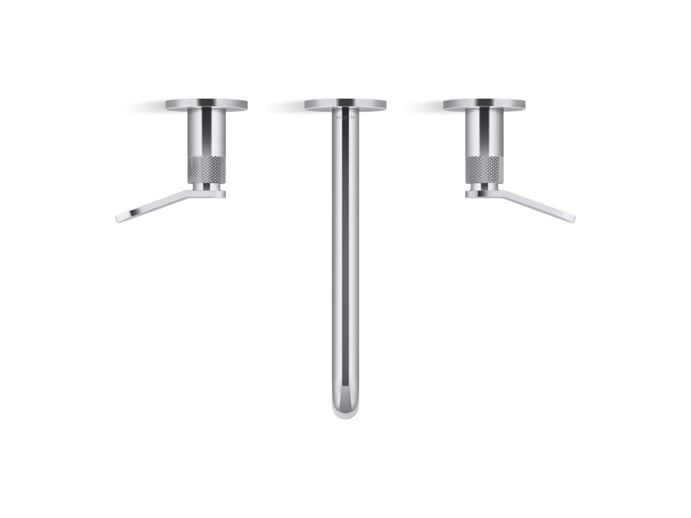 Modern American style meets sleek European form in the all-brass Aileron™ collection. Minimalist lines, distinctive knurling texture and handcrafted character make this series suitable for any contemporary or transitional environment. Paying homage to aeronautical design, Aileron™ features thoughtful details including a slender tube spout, winged handle set, and finial-adorned levers. Kallista is proud to introduce Aileron™ in partnership with Italian manufacturer CRISTINA Rubinetterie and creative industrial design team Silvana Angeletti and Daniele Ruzza. As a declaration in American Contemporary design, this Aileron™ wall mount widespread faucet with an elongated spout is a captivating addition to any modern bathroom aesthetic.- High-quality solid-brass construction for durability and reliability