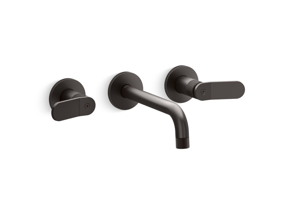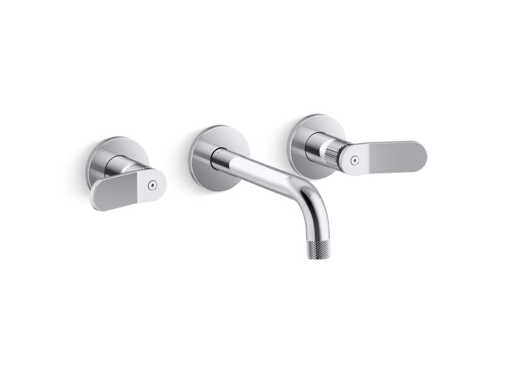 Modern American style meets sleek European form in the all-brass Aileron™ collection. Minimalist lines, distinctive knurling texture and handcrafted character make this series suitable for any contemporary or transitional environment. Paying homage to aeronautical design, Aileron™ features thoughtful details including a slender tube spout, winged handle set, and finial-adorned levers. Kallista is proud to introduce Aileron™ in partnership with Italian manufacturer CRISTINA Rubinetterie and creative industrial design team Silvana Angeletti and Daniele Ruzza. As a declaration in American Contemporary design, this Aileron™ wall mount widespread faucet is a captivating addition to any modern bathroom aesthetic.- High-quality solid-brass construction for durability and reliability