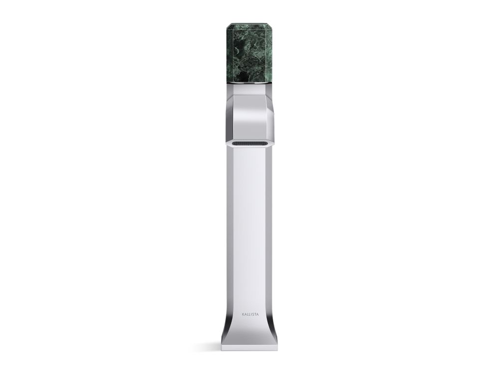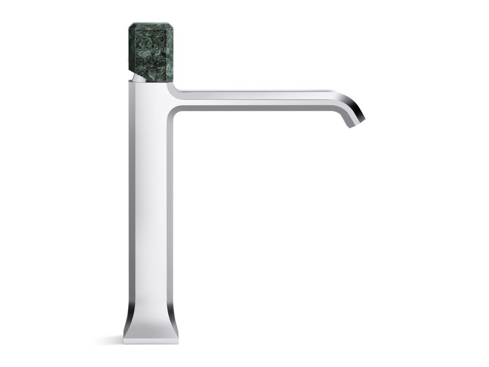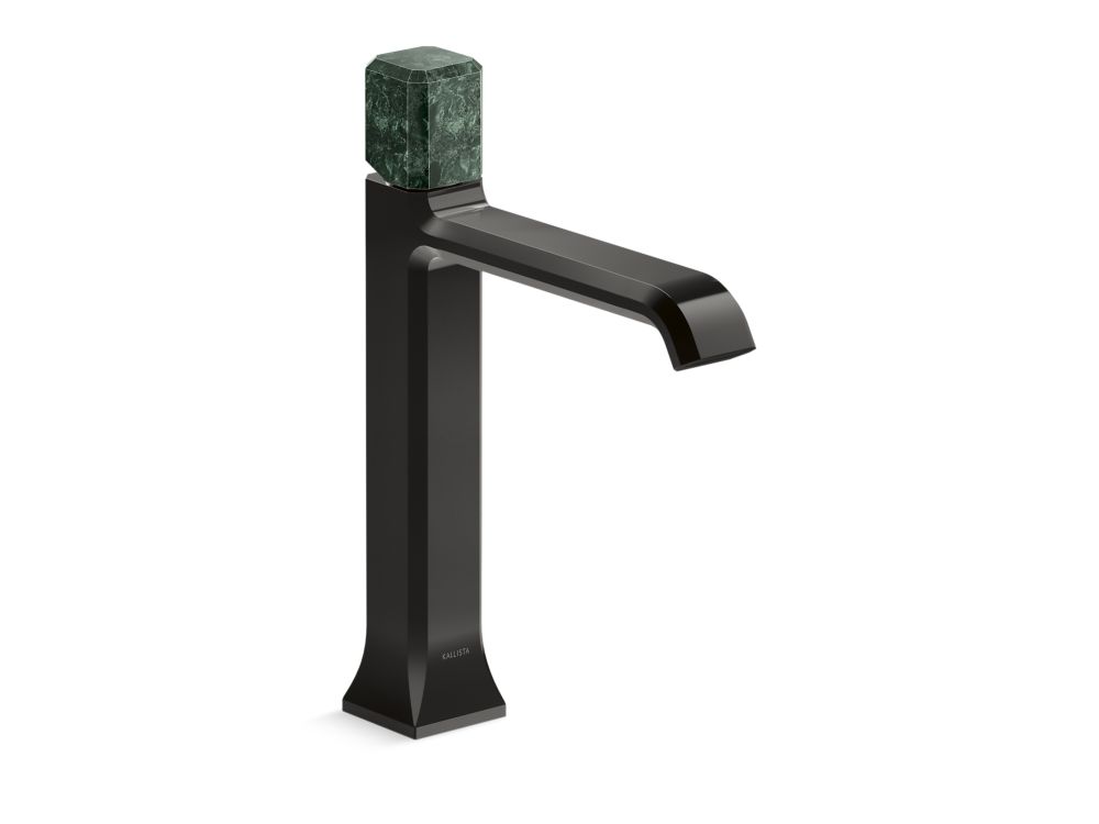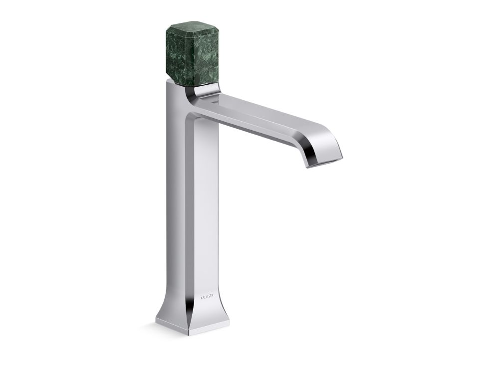 Showcasing Kallista’s first soft square profile intricately faceted in the likeness of a gem stone, the Bezel™ collection features an Art Deco-inspired silhouette, elevated natural stone adornments and a precision cut contour tempered by classical composition. The result is a luxurious, versatile and classic aesthetic, developed to endure the test of time. Kallista is proud to introduce Bezel™ in partnership with Italian manufacturer CRISTINA Rubinetterie and creative industrial design team Busetti Garuti Redaelli. A distinguishing focal point for the discerning eye, this single control sink faucet with tall spout, adorned with a striking green Guatemala natural stone handle, is the ultimate statement in both stature and refined detail. Due to the natural properties of the stone, coloring may vary.- High-quality solid-brass construction for durability and reliability