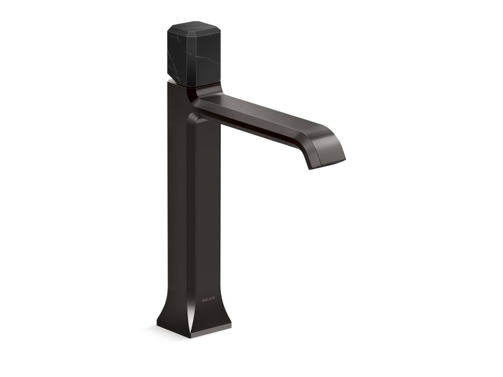 Showcasing Kallista’s first soft square profile intricately faceted in the likeness of a gem stone, the Bezel™ collection features an Art Deco-inspired silhouette, elevated natural stone adornments and a precision cut contour tempered by classical composition. The result is a luxurious, versatile and classic aesthetic, developed to endure the test of time. Kallista is proud to introduce Bezel™ in partnership with Italian manufacturer CRISTINA Rubinetterie and creative industrial design team Busetti Garuti Redaelli. A distinguishing focal point for the discerning eye, this single control sink faucet with tall spout, adorned with a striking Italian Nero Marquina natural stone handle, is the ultimate statement in both stature and refined detail. Due to the natural properties of the stone, coloring may vary.- High-quality solid-brass construction for durability and reliability