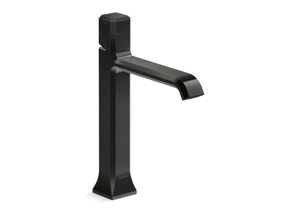 Showcasing Kallista’s first soft square profile intricately faceted in the likeness of a gem stone, the Bezel™ collection features an Art Deco-inspired silhouette, elevated natural stone adornments and a precision cut contour tempered by classical composition. The result is a luxurious, versatile and classic aesthetic, developed to endure the test of time. Kallista is proud to introduce Bezel™ in partnership with Italian manufacturer CRISTINA Rubinetterie and creative industrial design team Busetti Garuti Redaelli. A distinguishing focal point for the discerning eye, this single control sink faucet with tall spout, adorned with a striking Italian Nero Marquina natural stone handle, is the ultimate statement in both stature and refined detail. Due to the natural properties of the stone, coloring may vary.- High-quality solid-brass construction for durability and reliability