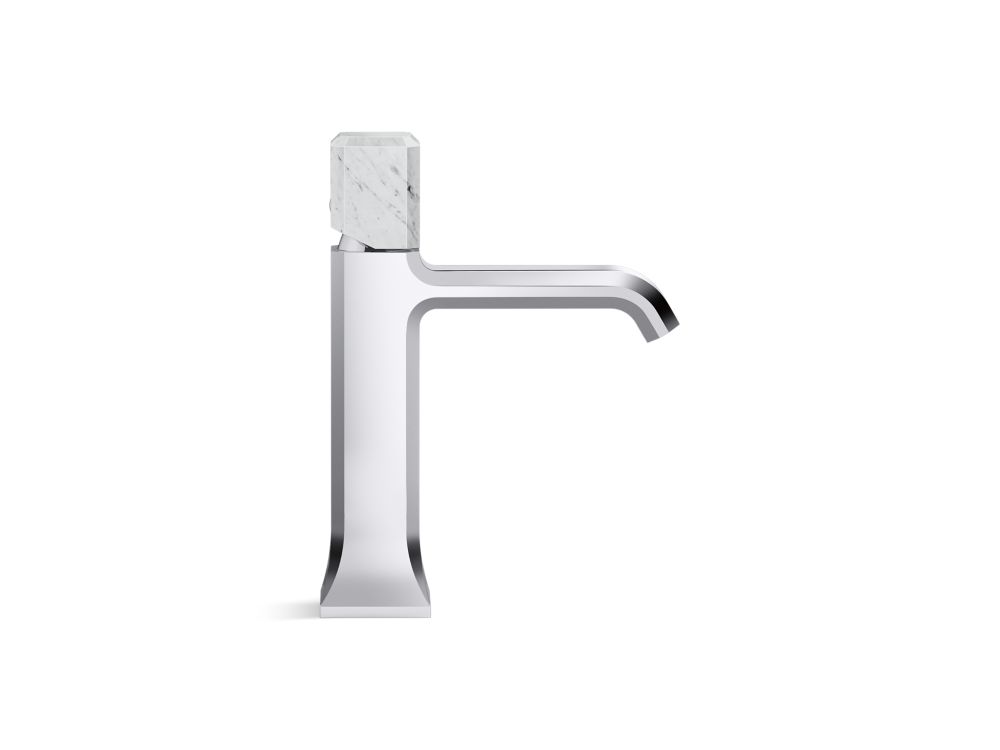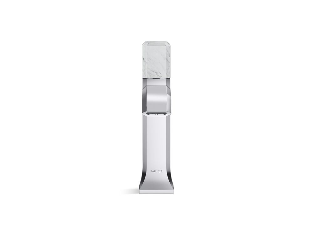 Showcasing Kallista’s first soft square profile intricately faceted in the likeness of a gem stone, the Bezel™ collection features an Art Deco-inspired silhouette, elevated natural stone adornments and a precision cut contour tempered by classical composition. The result is a luxurious, versatile and classic aesthetic, developed to endure the test of time. Kallista is proud to introduce Bezel™ in partnership with Italian manufacturer CRISTINA Rubinetterie and creative industrial design team Busetti Garuti Redaelli. A distinguishing focal point for the discerning eye, this single control sink faucet, adorned with a striking Italian statuary White Carrara natural stone handle, is the ultimate statement in both stature and refined detail. Due to the natural properties of the stone, coloring may vary.- High-quality solid-brass construction for durability and reliability