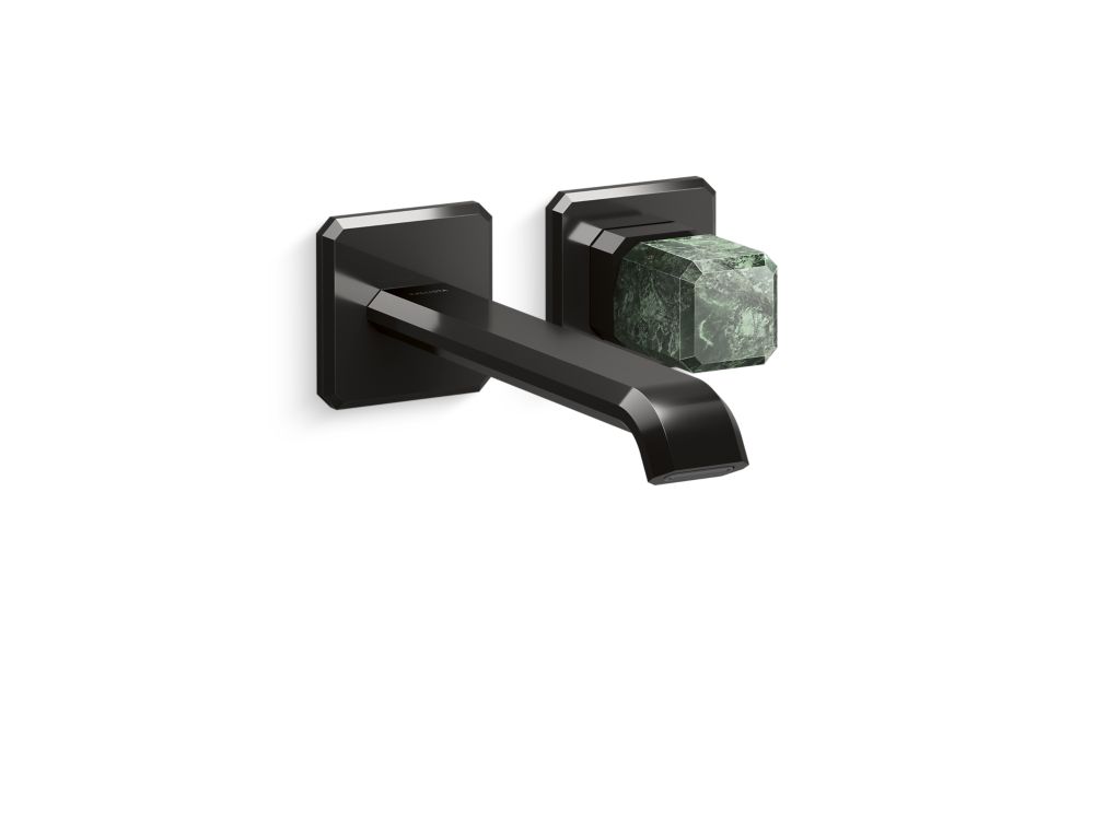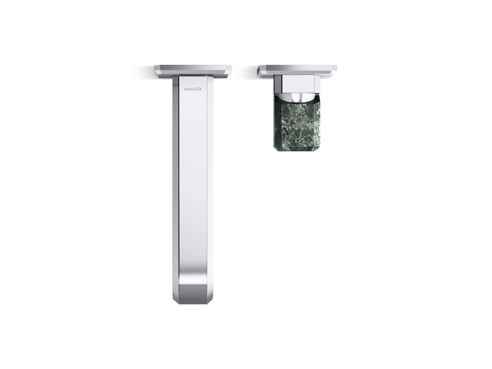 Showcasing Kallista’s first soft square profile intricately faceted in the likeness of a gem stone, the Bezel™ collection features an Art Deco-inspired silhouette, elevated natural stone adornments and a precision cut contour tempered by classical composition. The result is a luxurious, versatile and classic aesthetic, developed to endure the test of time. Kallista is proud to introduce Bezel™ in partnership with Italian manufacturer CRISTINA Rubinetterie and creative industrial design team Busetti Garuti Redaelli. A distinguishing focal point for the discerning eye, this wall mounted single control sink faucet with elongated spout, adorned with a striking Guatemala natural stone handle, is the ultimate statement in both stature and refined detail. Due to the natural properties of the stone, coloring may vary.- High-quality solid-brass construction for durability and reliability