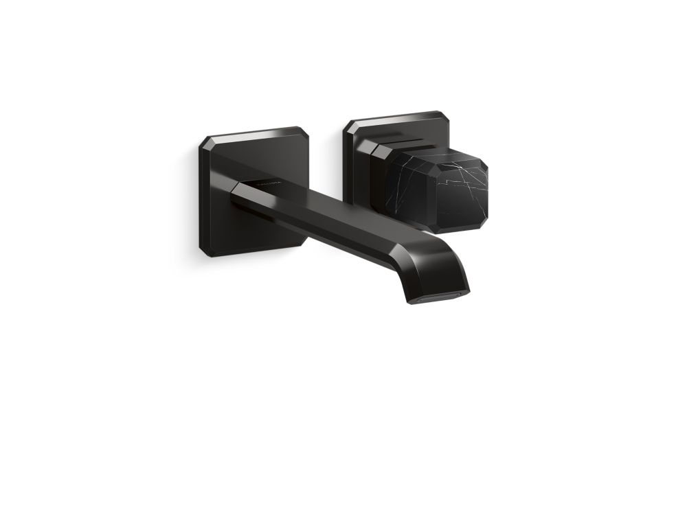 Showcasing Kallista’s first soft square profile intricately faceted in the likeness of a gem stone, the Bezel™ collection features an Art Deco-inspired silhouette, elevated natural stone adornments and a precision cut contour tempered by classical composition. The result is a luxurious, versatile and classic aesthetic, developed to endure the test of time. Kallista is proud to introduce Bezel™ in partnership with Italian manufacturer CRISTINA Rubinetterie and creative industrial design team Busetti Garuti Redaelli. A distinguishing focal point for the discerning eye, this wall mounted single control sink faucet with elongated spout, adorned with a striking Italian Nero Marquina natural stone handle, is the ultimate statement in both stature and refined detail. Due to the natural properties of the stone, coloring may vary.- High-quality solid-brass construction for durability and reliability