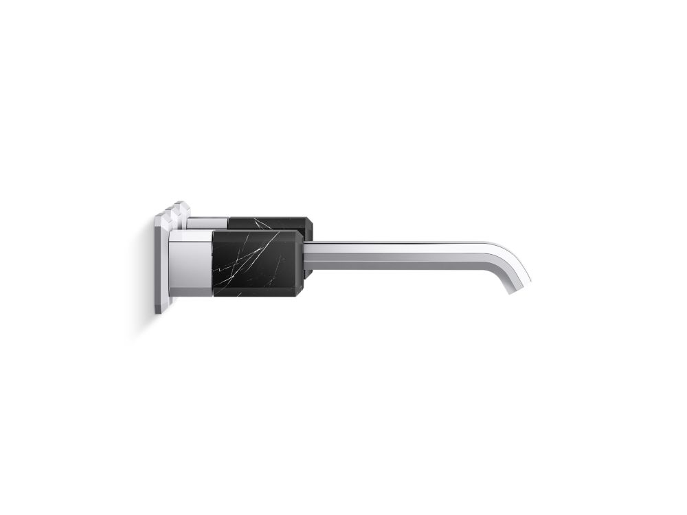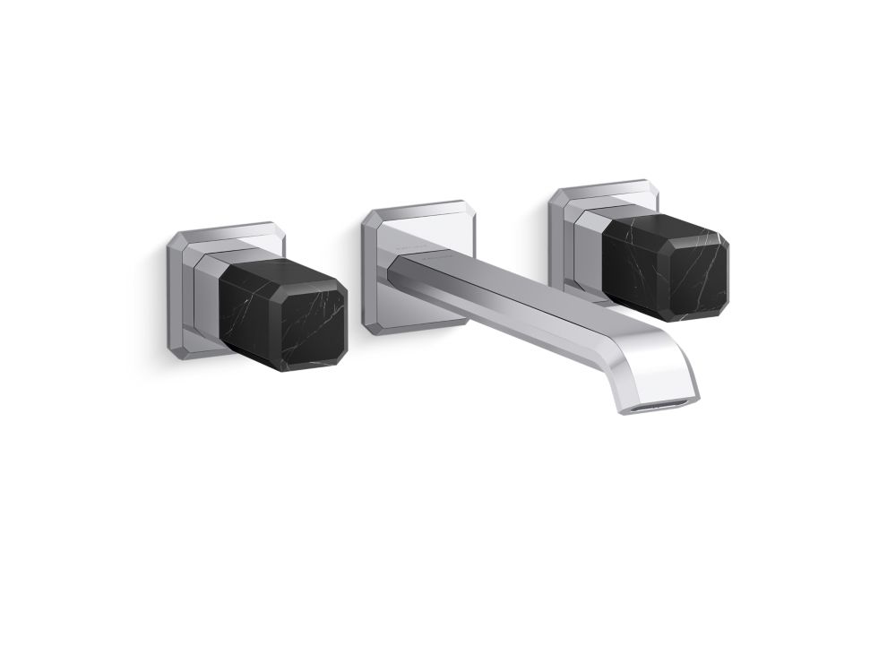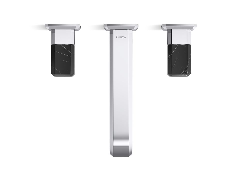 Showcasing Kallista’s first soft square profile intricately faceted in the likeness of a gem stone, the Bezel™ collection features an Art Deco-inspired silhouette, elevated natural stone adornments and a precision cut contour tempered by classical composition. The result is a luxurious, versatile and classic aesthetic, developed to endure the test of time. Kallista is proud to introduce Bezel™ in partnership with Italian manufacturer CRISTINA Rubinetterie and creative industrial design team Busetti Garuti Redaelli. A distinguishing focal point for the discerning eye, this wall mount widespread sink faucet with elongated spout, adorned with striking Italian Nero Marquina natural stone handles, is the ultimate statement in both stature and refined detail. Due to the natural properties of the stone, coloring may vary.- High-quality solid-brass construction for durability and reliability