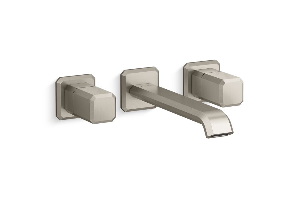 Showcasing Kallista’s first soft square profile intricately faceted in the likeness of a gem stone, the Bezel™ collection features an Art Deco-inspired silhouette with a precision cut contour tempered by classical composition. The result is a luxurious, versatile and classic aesthetic, developed to endure the test of time. Kallista is proud to introduce Bezel™ in partnership with Italian manufacturer CRISTINA Rubinetterie and creative industrial design team Busetti Garuti Redaelli. A distinguishing focal point for the discerning eye, this wall mounted widespread sink faucet with elongated spout is the ultimate statement in both stature and refined detail.- High quality full brass construction for durability and reliability