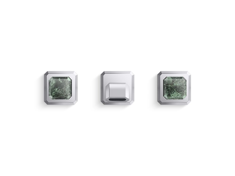 Showcasing Kallista’s first soft square profile intricately faceted in the likeness of a gem stone, the Bezel™ collection features an Art Deco-inspired silhouette, elevated natural stone adornments and a precision cut contour tempered by classical composition. The result is a luxurious, versatile and classic aesthetic, developed to endure the test of time. Kallista is proud to introduce Bezel™ in partnership with Italian manufacturer CRISTINA Rubinetterie and creative industrial design team Busetti Garuti Redaelli. A distinguishing focal point for the discerning eye, this wall mount widespread sink faucet, adorned with striking green Guatemala natural stone handles, is the ultimate statement in both stature and refined detail. Due to the natural properties of the stone, coloring may vary.- High-quality solid-brass construction for durability and reliability