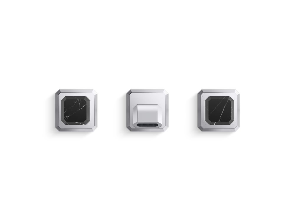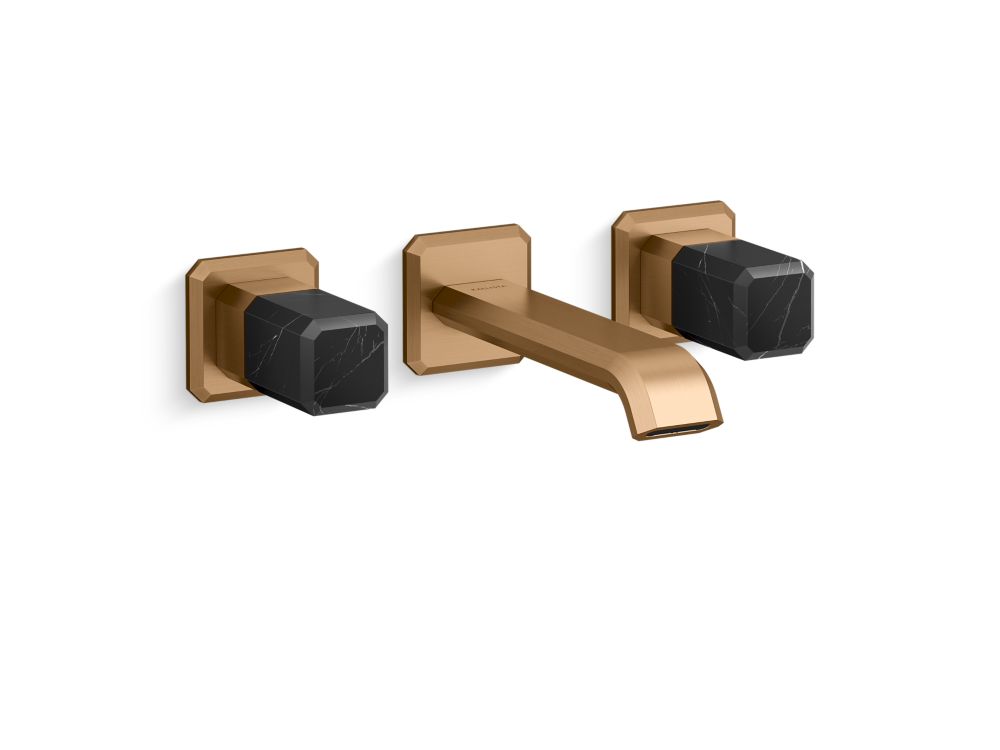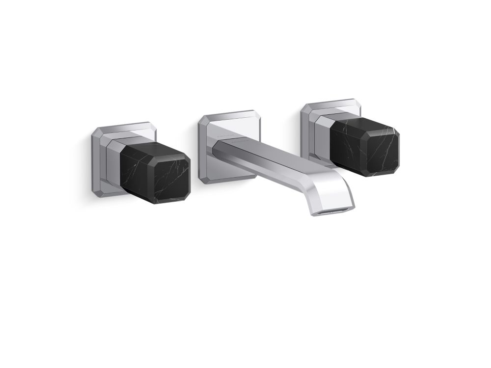 Showcasing Kallista’s first soft square profile intricately faceted in the likeness of a gem stone, the Bezel™ collection features an Art Deco-inspired silhouette, elevated natural stone adornments and a precision cut contour tempered by classical composition. The result is a luxurious, versatile and classic aesthetic, developed to endure the test of time. Kallista is proud to introduce Bezel™ in partnership with Italian manufacturer CRISTINA Rubinetterie and creative industrial design team Busetti Garuti Redaelli. A distinguishing focal point for the discerning eye, this wall mount widespread sink faucet, adorned with striking Italian Nero Marquina natural stone handles, is the ultimate statement in both stature and refined detail. Due to the natural properties of the stone, coloring may vary.- High-quality solid-brass construction for durability and reliability