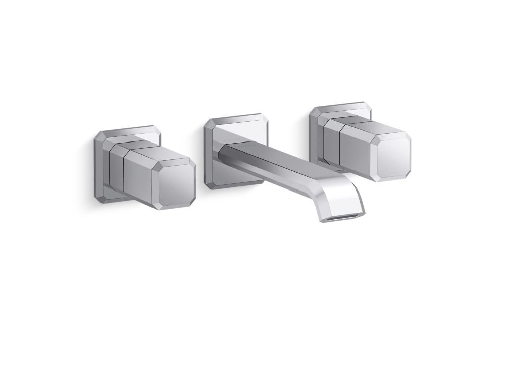 Showcasing Kallista’s first soft square profile intricately faceted in the likeness of a gem stone, the Bezel™ collection features an Art Deco-inspired silhouette with a precision cut contour tempered by classical composition. The result is a luxurious, versatile and classic aesthetic, developed to endure the test of time. Kallista is proud to introduce Bezel™ in partnership with Italian manufacturer CRISTINA Rubinetterie and creative industrial design team Busetti Garuti Redaelli. A distinguishing focal point for the discerning eye, this wall mounted widespread sink faucet is the ultimate statement in both stature and refined detail.- High-quality solid-brass construction for durability and reliability