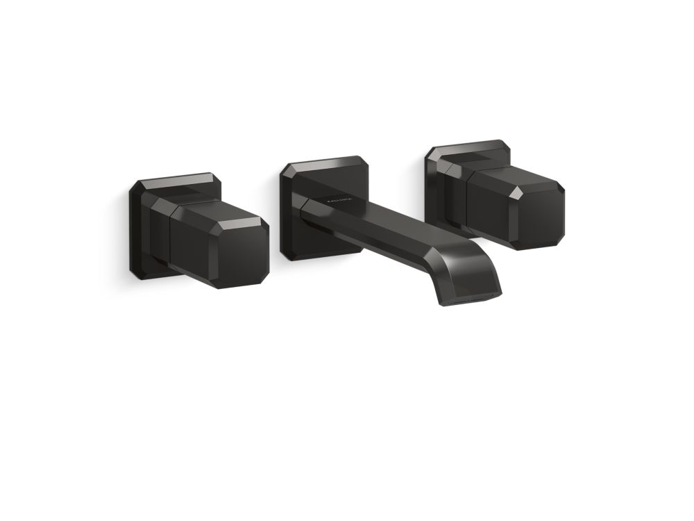 Showcasing Kallista’s first soft square profile intricately faceted in the likeness of a gem stone, the Bezel™ collection features an Art Deco-inspired silhouette with a precision cut contour tempered by classical composition. The result is a luxurious, versatile and classic aesthetic, developed to endure the test of time. Kallista is proud to introduce Bezel™ in partnership with Italian manufacturer CRISTINA Rubinetterie and creative industrial design team Busetti Garuti Redaelli. A distinguishing focal point for the discerning eye, this wall mounted widespread sink faucet is the ultimate statement in both stature and refined detail.- High-quality solid-brass construction for durability and reliability
