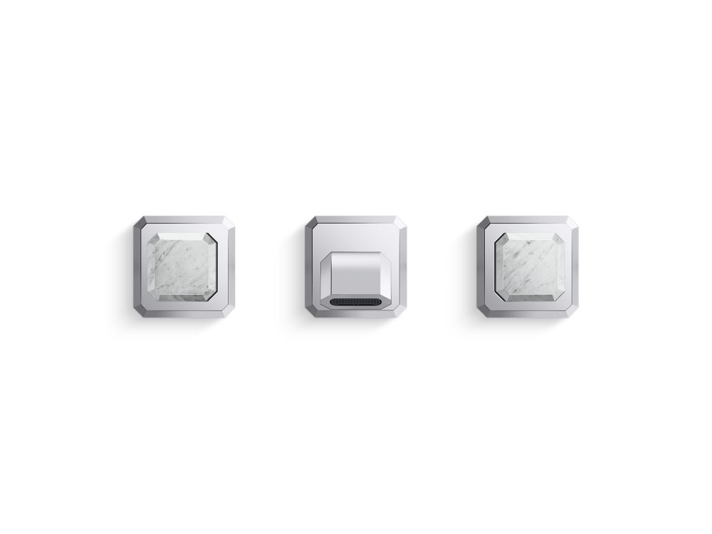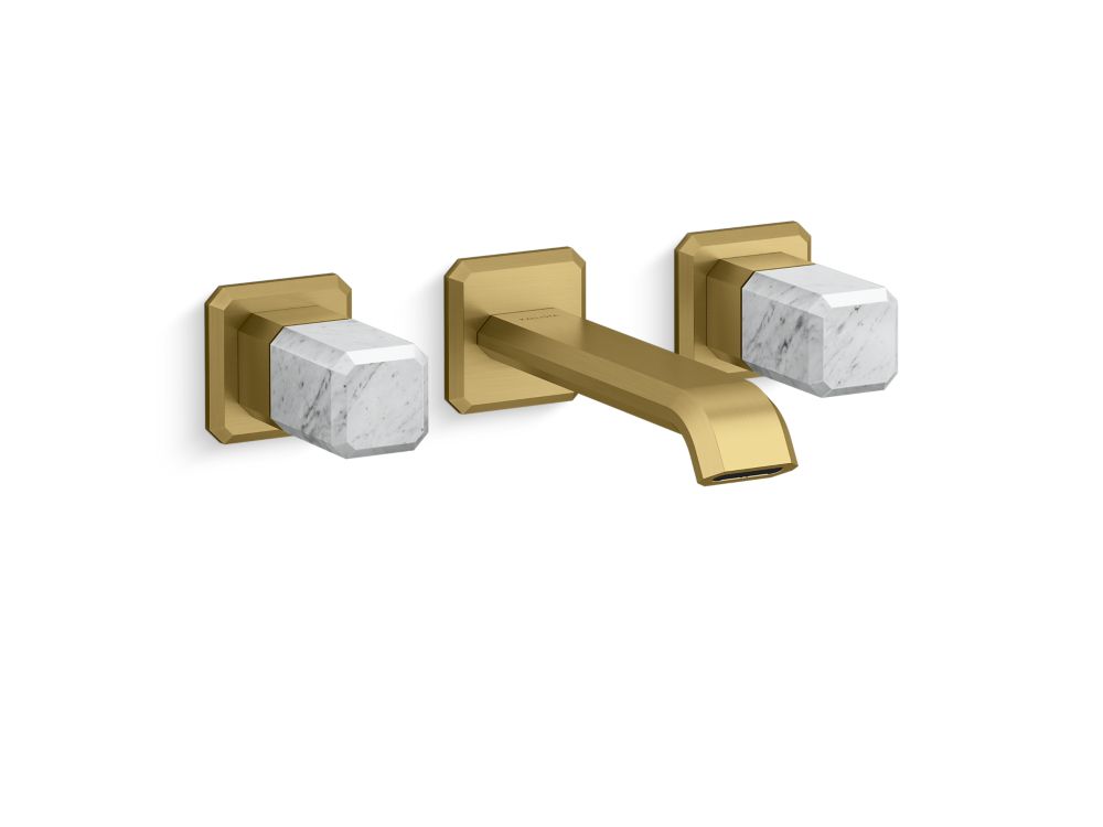 Showcasing Kallista’s first soft square profile intricately faceted in the likeness of a gem stone, the Bezel™ collection features an Art Deco-inspired silhouette, elevated natural stone adornments and a precision cut contour tempered by classical composition. The result is a luxurious, versatile and classic aesthetic, developed to endure the test of time. Kallista is proud to introduce Bezel™ in partnership with Italian manufacturer CRISTINA Rubinetterie and creative industrial design team Busetti Garuti Redaelli. A distinguishing focal point for the discerning eye, this wall mount widespread sink faucet, adorned with striking Italian statuary White Carrara natural stone handles, is the ultimate statement in both stature and refined detail. Due to the natural properties of the stone, coloring may vary.- High-quality solid-brass construction for durability and reliability