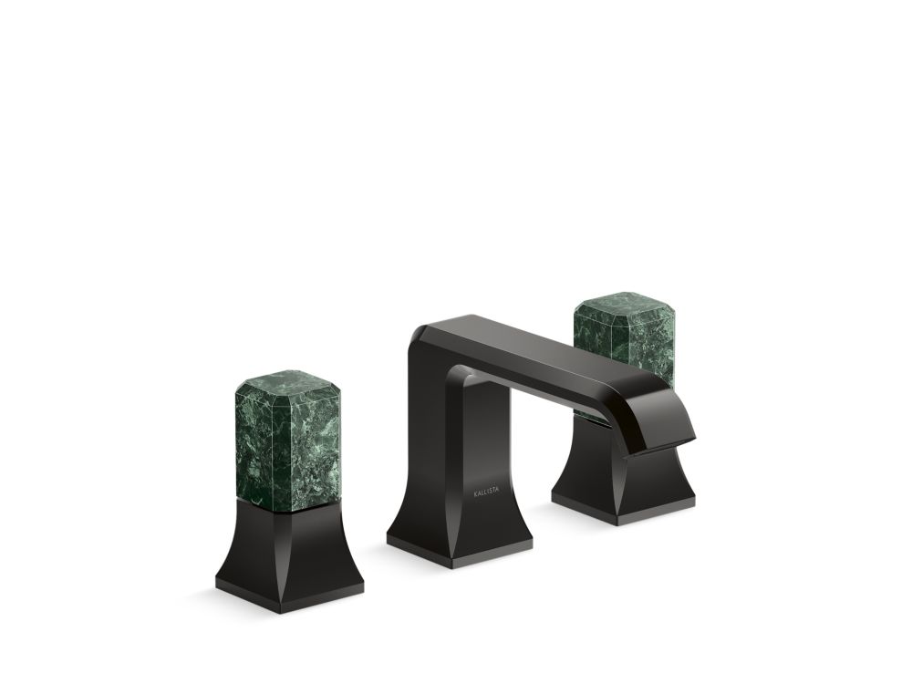 Showcasing Kallista’s first soft square profile intricately faceted in the likeness of a gem stone, the Bezel™ collection features an Art Deco-inspired silhouette, elevated natural stone adornments and a precision cut contour tempered by classical composition. The result is a luxurious, versatile and classic aesthetic, developed to endure the test of time. Kallista is proud to introduce Bezel™ in partnership with Italian manufacturer CRISTINA Rubinetterie and creative industrial design team Busetti Garuti Redaelli. A distinguishing focal point for the discerning eye, this widespread sink faucet adorned with striking green Guatemala natural stone handles, is the ultimate statement in both stature and refined detail. Due to the natural properties of the stone, coloring may vary.- High-quality solid-brass construction for durability and reliability
