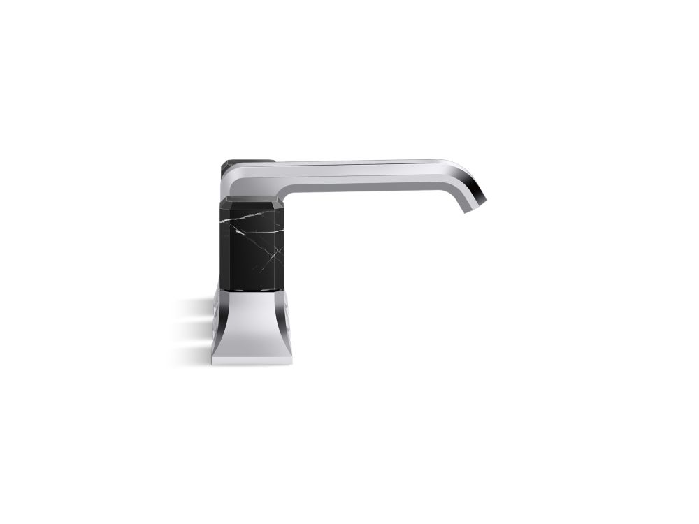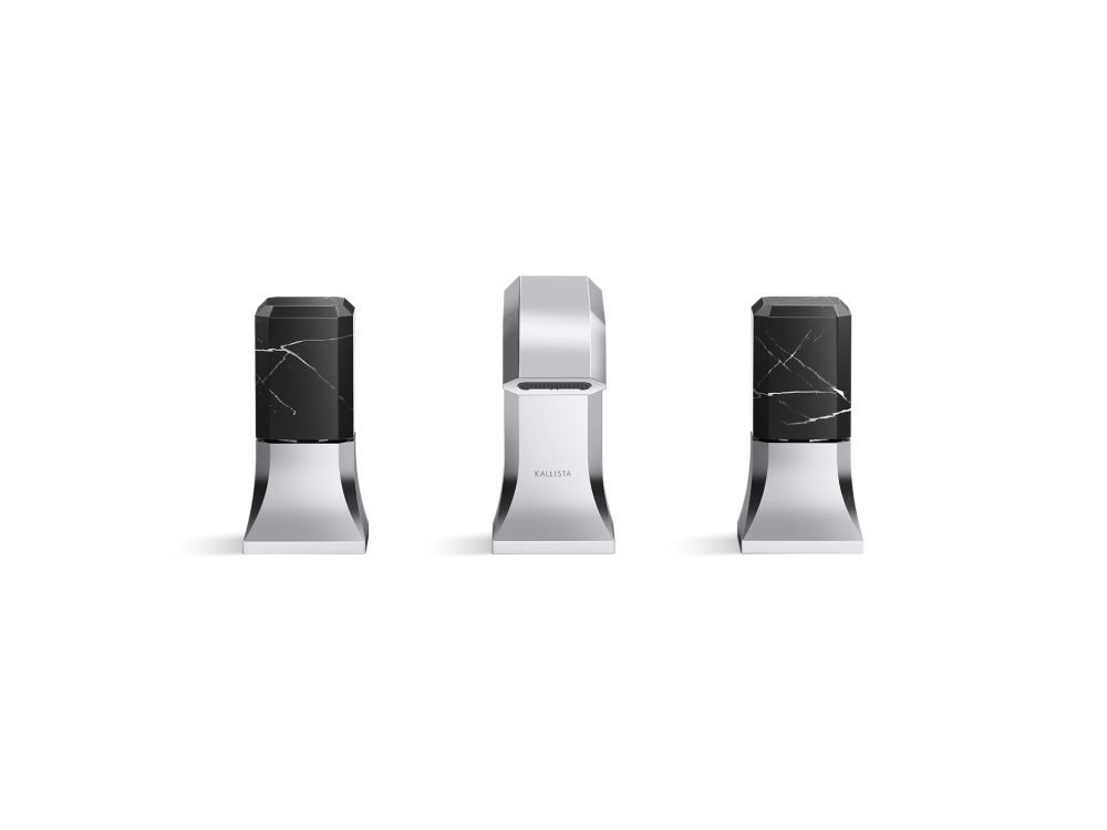Showcasing Kallista’s first soft square profile intricately faceted in the likeness of a gem stone, the Bezel™ collection features an Art Deco-inspired silhouette, elevated natural stone adornments and a precision cut contour tempered by classical composition. The result is a luxurious, versatile and classic aesthetic, developed to endure the test of time. Kallista is proud to introduce Bezel™ in partnership with Italian manufacturer CRISTINA Rubinetterie and creative industrial design team Busetti Garuti Redaelli. A distinguishing focal point for the discerning eye, this widespread sink faucet adorned with Italian Nero Marquina natural stone handles, is the ultimate statement in both stature and refined detail. Due to the natural properties of the stone, coloring may vary.- High-quality solid-brass construction for durability and reliability