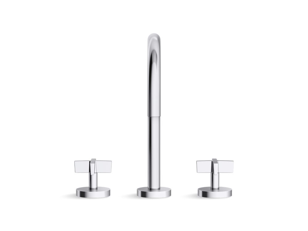 Bring home a touch of modern sophistication with the One sink faucet. With its sleek gooseneck spout, polished cross handles and pure form, this faucet will enhance the look of any contemporary bathroom space.- A selection of products within this collection is in stock and ready to ship. Please visit kallista.com/resources#ReadyToShip for the complete list of Ready-to-Ship products and finishes