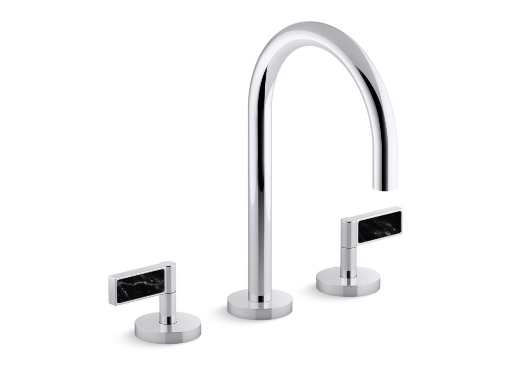 With its sleek gooseneck spout and distinctive details, the premium bathroom sink faucet by the One Decorative collection makes a statement in any modern bathroom. Lever handles with Nero Marquina marble perfectly complement the faucet's minimalist beauty. Featuring a rich black hue with delicate white patterning, Nero Marquina has garnered international appeal for its contemporary sense of urban luxury.- High-quality solid-brass construction for durability and reliability