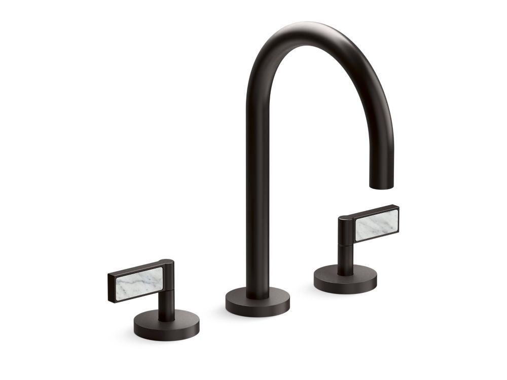With sleek gooseneck spout and distinctive details, the premium bathroom sink faucet by the One Decorative collection makes a statement in any modern bathroom. Lever handles with White Carrara marble perfectly complement the faucet's minimalist beauty, creating a lavish yet approachable sensibility. Featuring an elegant white hue with inky veins, White Carrara has defined timeless luxury in art and architecture for centuries.- High-quality solid-brass construction for durability and reliability