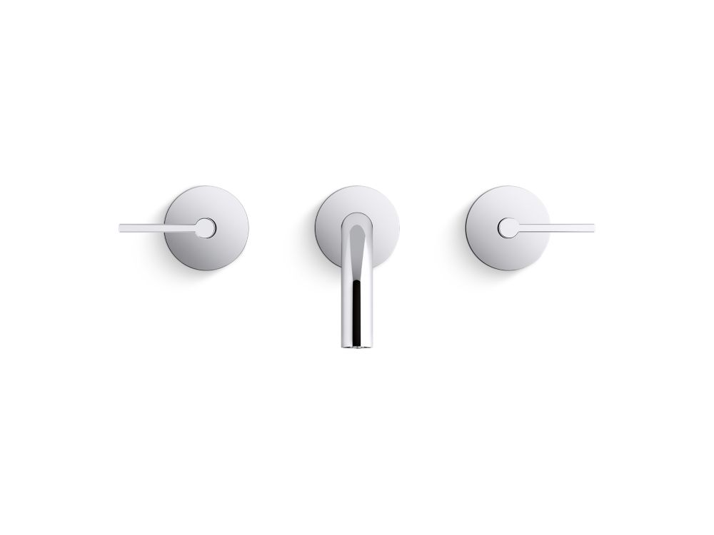 Pure form marries classic elegance in the One collection wall-mount bathroom sink faucet. Featuring lever handles and a sleek, elongated spout, the 1.2 gpm sink faucet delivers minimalist beauty to the transitional or contemporary bathroom. Available in a wide range of premium finishes.- High-quality solid-brass construction for durability and reliability