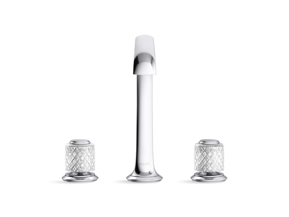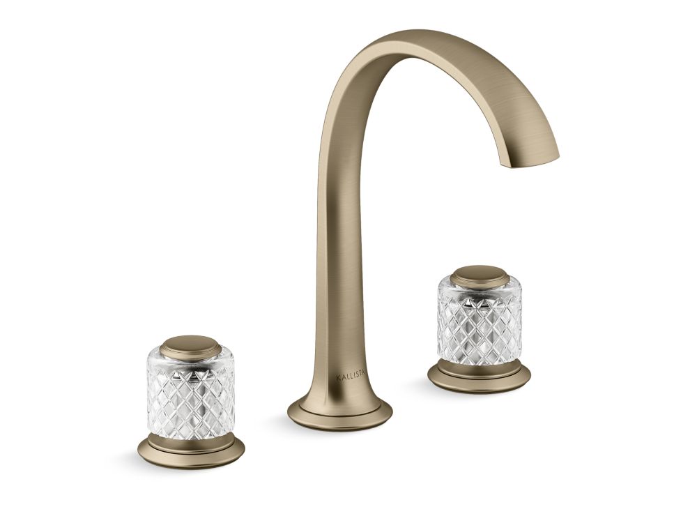 Accented with luminous crisscross-etched clear crystal from esteemed French crystallerie Saint-Louis, the strikingly approachable Script Decorative sink faucet with knob handles and arch spout offers unparalleled elegance, artisan craftsmanship, and exquisite materials to elevate your everyday use. The decadent widespread faucet was designed to make a statement in any traditional or transitional bathroom space.- Hand-cut French crystal knobs by Saint-Louis