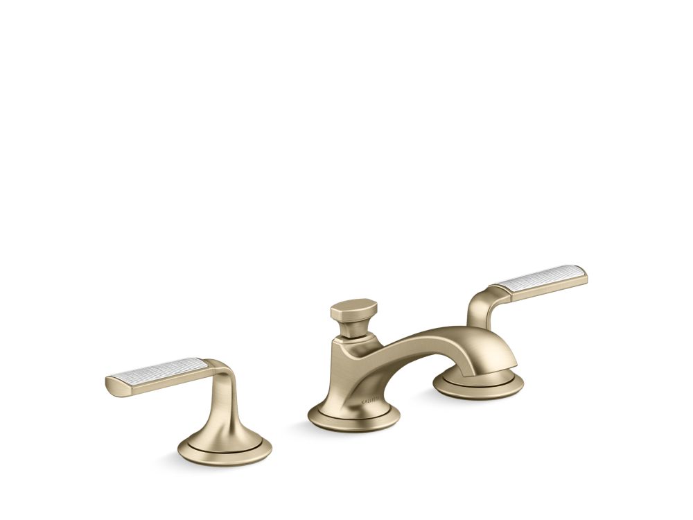 Hand-painted enamel accents swirl around lever handles in a calming wave pattern, ensuring the artisan craftsmanship of the Script Decorative sink faucet shines in any bathroom setting. The delicate and calming Frost Wave enamel adornments are made using the historic art of guilloche. Elevate your everyday with this unique, luxurious widespread sink faucet with low spout.- Handcrafted fired enamel handle insert with Wave pattern