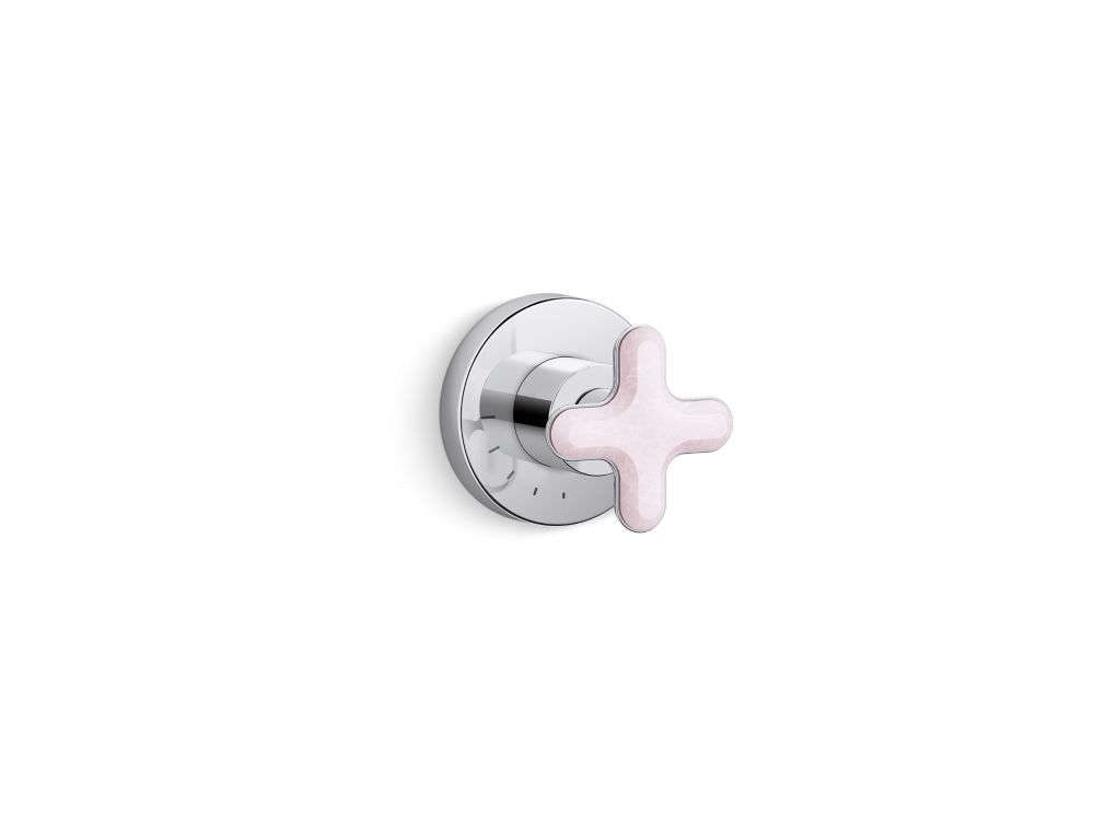 American contemporary form is embodied in the streamlined simplicity of the 002™ brassware collection, starring organic round edges and uninterrupted clean lines. This premium Volume Control shower trim with upgraded cross handle will elevate your contemporary or transitional bathroom setting. Adorned with a jewelry inspired handle featuring exquisite hand-crafted Rose Quartz, one of three meticulously curated natural stone offerings, and the availability in five luxurious finishes, the 002™ bathroom collection allows you to create a faucet pairing that suits your personal style.- High-quality metal construction for durability and reliability