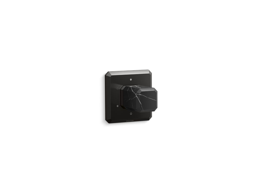 Showcasing Kallista’s first soft square profile intricately faceted in the likeness of a gem stone, the Bezel™ collection features an Art Deco-inspired silhouette, elevated natural stone adornments and a precision cut contour tempered by classical composition. The result is a luxurious, versatile and classic aesthetic, developed to endure the test of time. Kallista is proud to introduce Bezel™ in partnership with Italian manufacturer CRISTINA Rubinetterie and creative industrial design team Busetti Garuti Redaelli. A distinguishing focal point for the discerning eye, this eco transfer showering trim, adorned with a striking Italian Nero Marquina natural stone handle, is the ultimate statement in both stature and refined detail. Due to the natural properties of the stone, coloring may vary.- High-quality solid-brass construction for durability and reliability