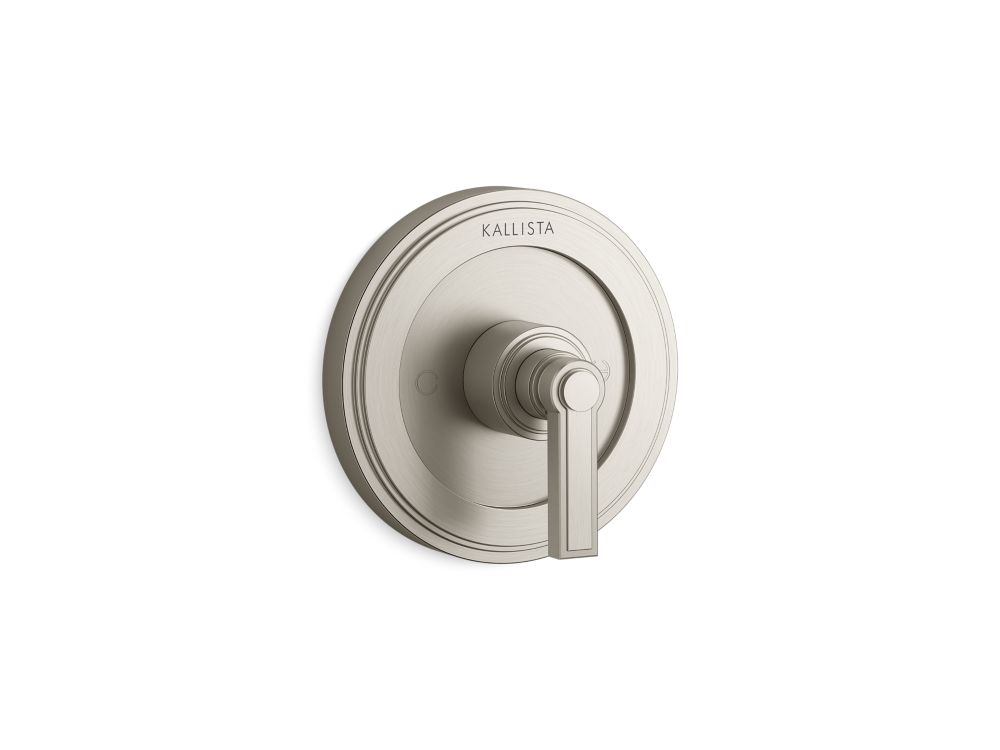 Featuring balanced proportions and beautiful modern details, the Vir Stil Minimal thermostatic trim balances form with quiet, efficient functionality. Designed for the stylish showering space, this premium thermostatic valve trim allows for precise temperature adjustment, providing a customized shower experience in the contemporary or transitional bathroom. Vir Stil Minimal is a collection of pared-down Bauhaus-inspired modern classics designed by acclaimed artist and designer Laura Kirar. Sharing architectural inspiration with the Vir Stil classic collection – single controls, lever handles and stepped escutcheons – Vir Stil Minimal explores tubular shapes and smooth as opposed to fluted details, distilling the aesthetic down to its essence. Here, a purity of form serves to underscore luxurious materials and rich finishes, revealing their intention and elevating their impact. This collection is intended for full bathroom specification, including sink and tub faucets, floor-mounted tub filler, shower fixtures and accessories, as well as a pull-down faucet and bar/entertainment faucet for kitchen use.- Sleek contemporary design
