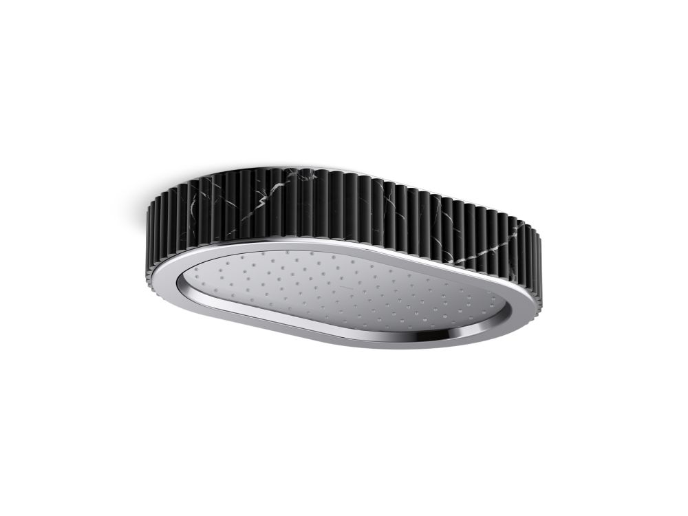 As the first introduction of Kallista’s innovative Decorative Showering category, Bandeau™ is the embodiment of luxury for the bathroom. Exquisite and thoughtful, this series balances form and function to deliver elegance and superior performance. Bandeau’s uniquely oval rain showerhead is crafted with a fluted marble sash which is meticulously carved from a single piece of Nero Marquina. Optional extension mount options allow the rain showerhead to be suspended at two heights beyond the standard flush installation: the Halo mount gives a floating appearance, while the Chandelier mount transforms the rain showerhead into a show-stopping focal piece.- High-quality solid-brass construction for durability and reliability
