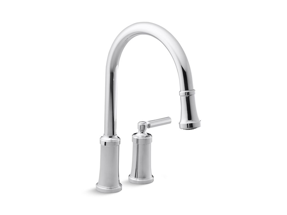 Traditional in style with a smooth arch and subtle detailing, the Quincy pull-down faucet is a beautiful addition to an epicurean's dream kitchen.- High-quality solid-brass construction for durability and reliability