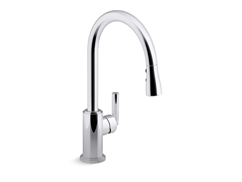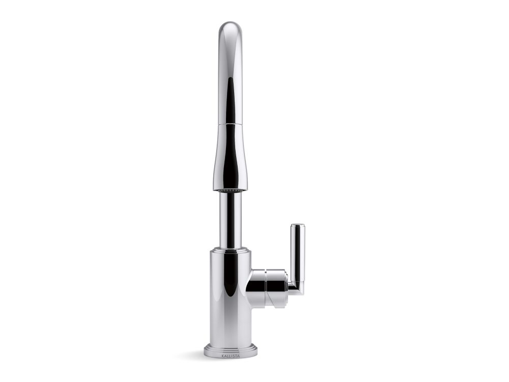 With a sleek arching spout and ergonomic handle, the Vir Stil Minimal pull-down kitchen faucet is a stunning complement to the modern kitchen. Vir Stil Minimal is a collection of pared-down Bauhaus-inspired modern classics designed by acclaimed artist and designer Laura Kirar. Sharing architectural inspiration with the Vir Stil classic collection – single controls, lever handles and stepped escutcheons – Vir Stil Minimal explores tubular shapes and smooth as opposed to fluted details, distilling the aesthetic down to its essence. Here, a purity of form serves to underscore luxurious materials and rich finishes, revealing their intention and elevating their impact. This collection is intended for full kitchen specification, including pull-down faucet, bar/entertainment faucet and coordinating Laura Kirar pot filler. Vir Stil Minimal is also a full bathroom collection including sink and tub faucets, floor-mounted tub filler, shower fixtures and accessories.- High-quality solid-brass construction for durability and reliability
